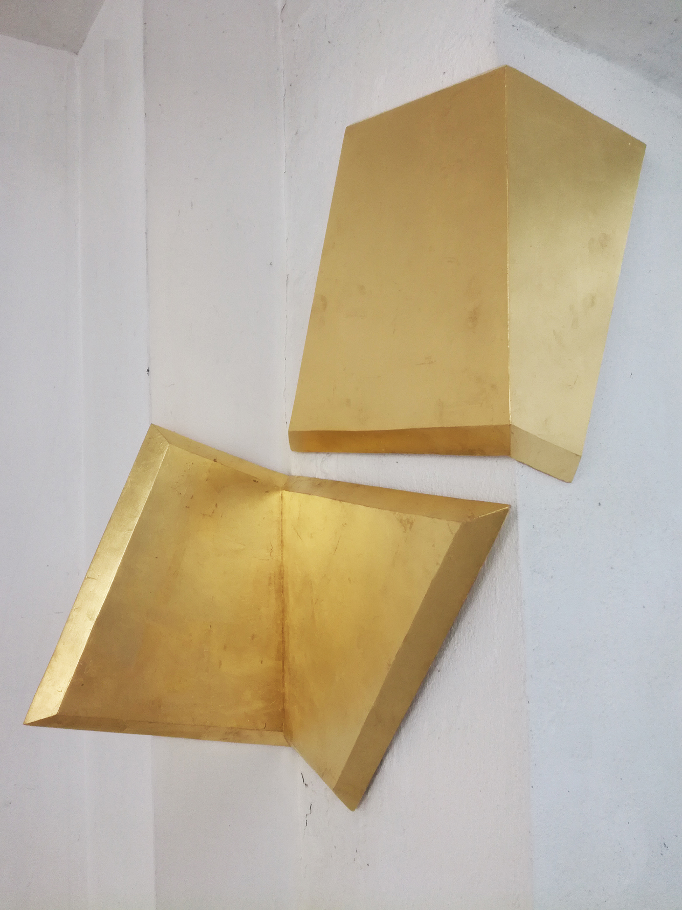unterschiedliche Formate, Pappe, Sand, Gips, Blattgold, Acrylfarbe