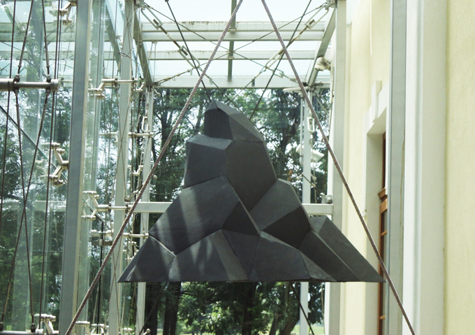 The mountain object is built from cardboard stencils that are folded and patched together.